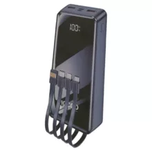 این پاوربانک با کیفیت ترین پاوربانک مجهز به انواع پروتکل های شارژ ایمن و سریع است که دارای 4 کابل خروجی و 2 درگاه usb یک درگاه تایپ سی و یک درگاه میکرو است که می توانید .خروجی های پاوربانک 30 هزار 22.5W است که از استانداردهای ایمن و فناوری بهره میبرند . این پاور بانک مجهز به یک چیپست هوشمند میباشد که قادر است از باتری گوشی شما در برابر نوسانات و اتصالات کوتاه محافظت کند به گونهای که شدت جریان خروجی از پاوربانک را با شدت جریان ورودی گوشی شما یکسان میکند تا هیچ گونه آسیبی به باتری گوشی شما وارد نشود و باعث افزایش طول عمر باتری نیز بشود.. این پاور درای تمامی پروتکل های ایمنی روز دنیا است و تاییدیه اتحادیه اروپا را نیز دارد. این پاوربانک در برابر اتش و ضربه نیز مقاوم است